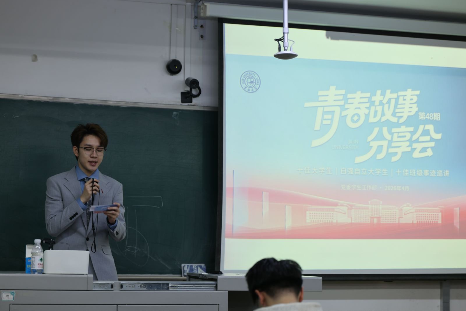 为充分发挥校园先进典型的示范引领作用,传递青春正能量,激励广大学生以榜样为标杆砥砺奋进、逐梦前行,4月8日,吉林大学第48期“青春故事分享会”顺利举办。本次活动特邀十佳大学生、自强自立大学生、十佳班级的五位优秀代表登台分享,大家结合自身成长轨迹、求学实践与集体建设历程,畅谈奋斗感悟、传授实用经验,为现场学子带来了一场触动心灵、催人奋进的青春交流。