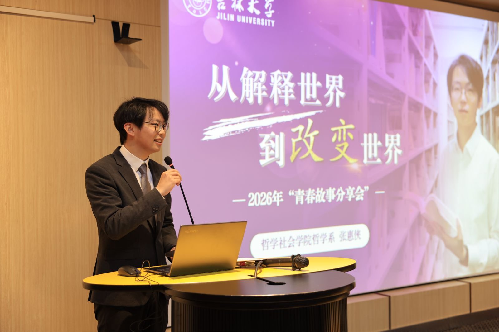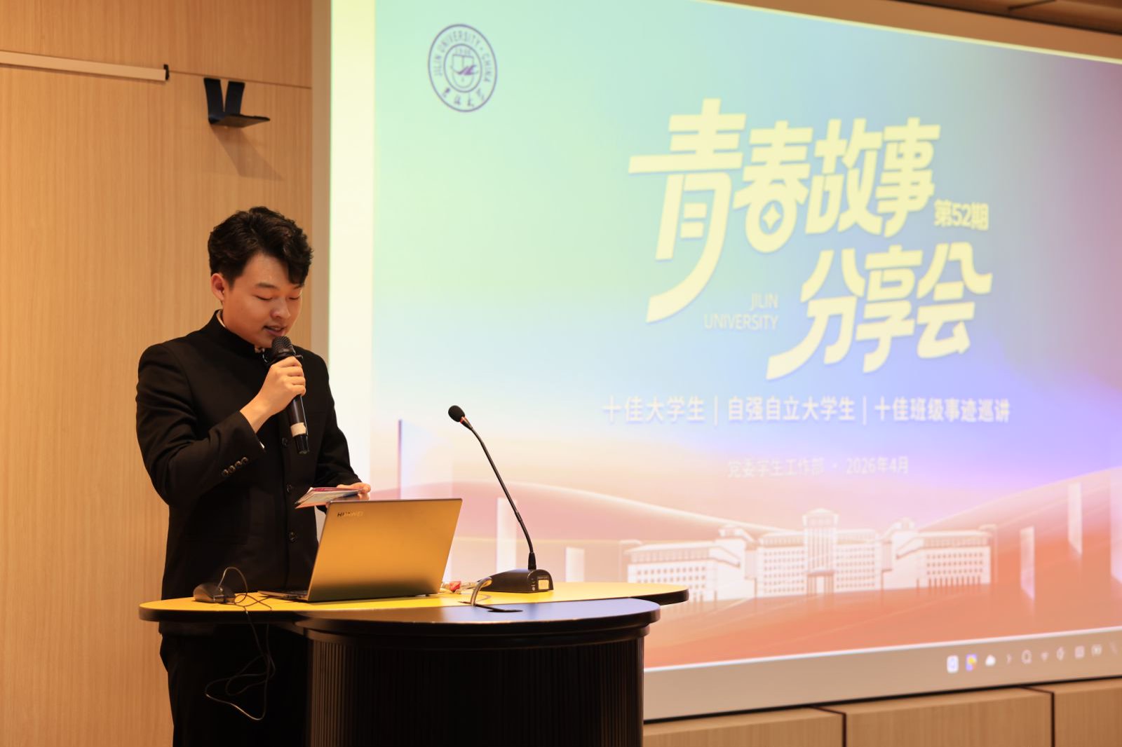 为深化榜样育人成效,引领青年学子在求知路上坚定信仰、锤炼本领、勇担使命,4月13日,吉林大学第52期“青春故事分享会”在中心校区鼎新图书馆8楼会议室顺利开展。本次活动汇聚十佳大学生、自强自立大学生、十佳班级五类先进典型,来自哲学、商科、马院、考古等领域的优秀代表依次登台,以思想为炬、以实干为笔,分享求学心路、成长经验与集体征程,为在场学子带来一场兼具思想深度、人文温度与奋斗力量的青春交流。