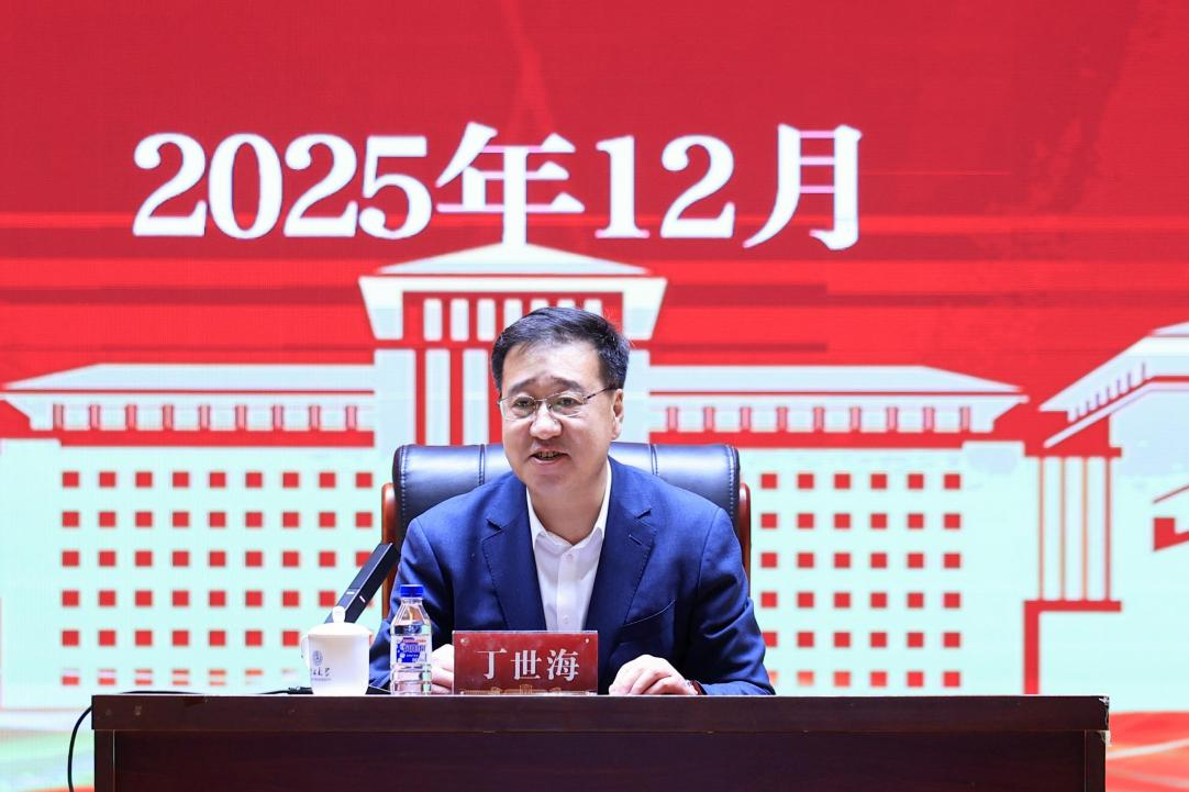 丁世海系统阐述了探索推动学生工作高质量发展的创新思路。他指出,学生工作是落实立德树人根本任务的重要依托。必须紧密结合学校“十五五”规划蓝图,统筹谋划、系统推进。要聚焦思政工作体系建设,构筑立德树人新格局;聚焦辅导员队伍建设,锻造专业化育人主力军;聚焦校园文化活动体系,打造浸润式育人生态;聚焦学生日常管理服务,提升精细化育人水平;聚焦人工智能平台建设,赋能智慧化育人转型;聚焦校园环境安全稳定,筑牢常态化育人底线。丁世海要求,全校学工系统要深刻领会、迅速行动,将“六个聚焦”的创新思路转化为扎实举措和实际成效,保障学生工作高质量发展,为培养担当民族复兴大任的时代新人、学校“双一流”建设加速跃升作出新的更大贡献。