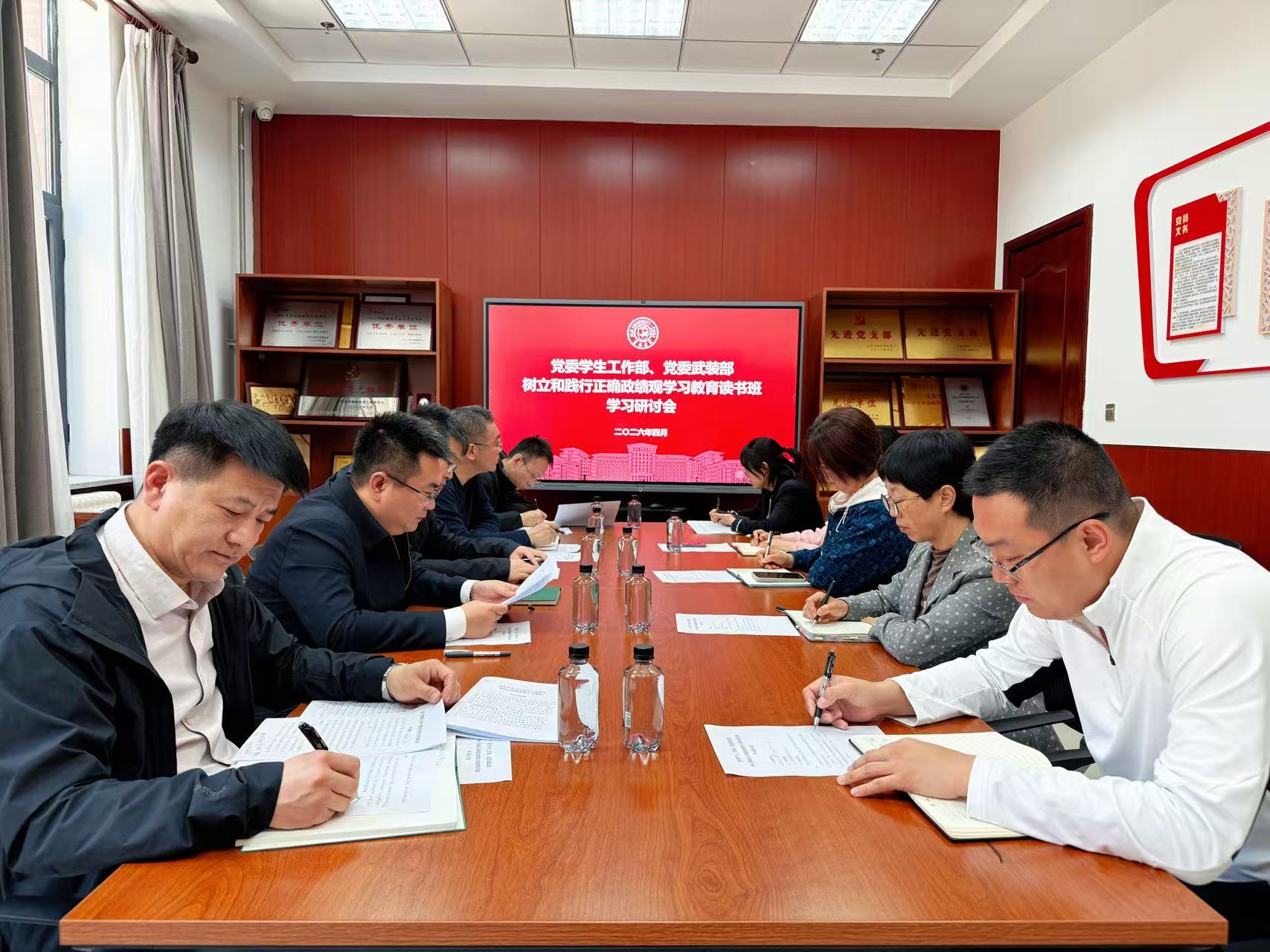 4月22日下午,党委学生工作部、党委武装部在中心校区鼎新楼C264会议室召开树立和践行正确政绩观学习教育读书班学习研讨会。会议由党委学生工作部、党委武装部部长李尚昆同志主持。部门领导班子成员、处级党员领导干部及支部委员参加会议。