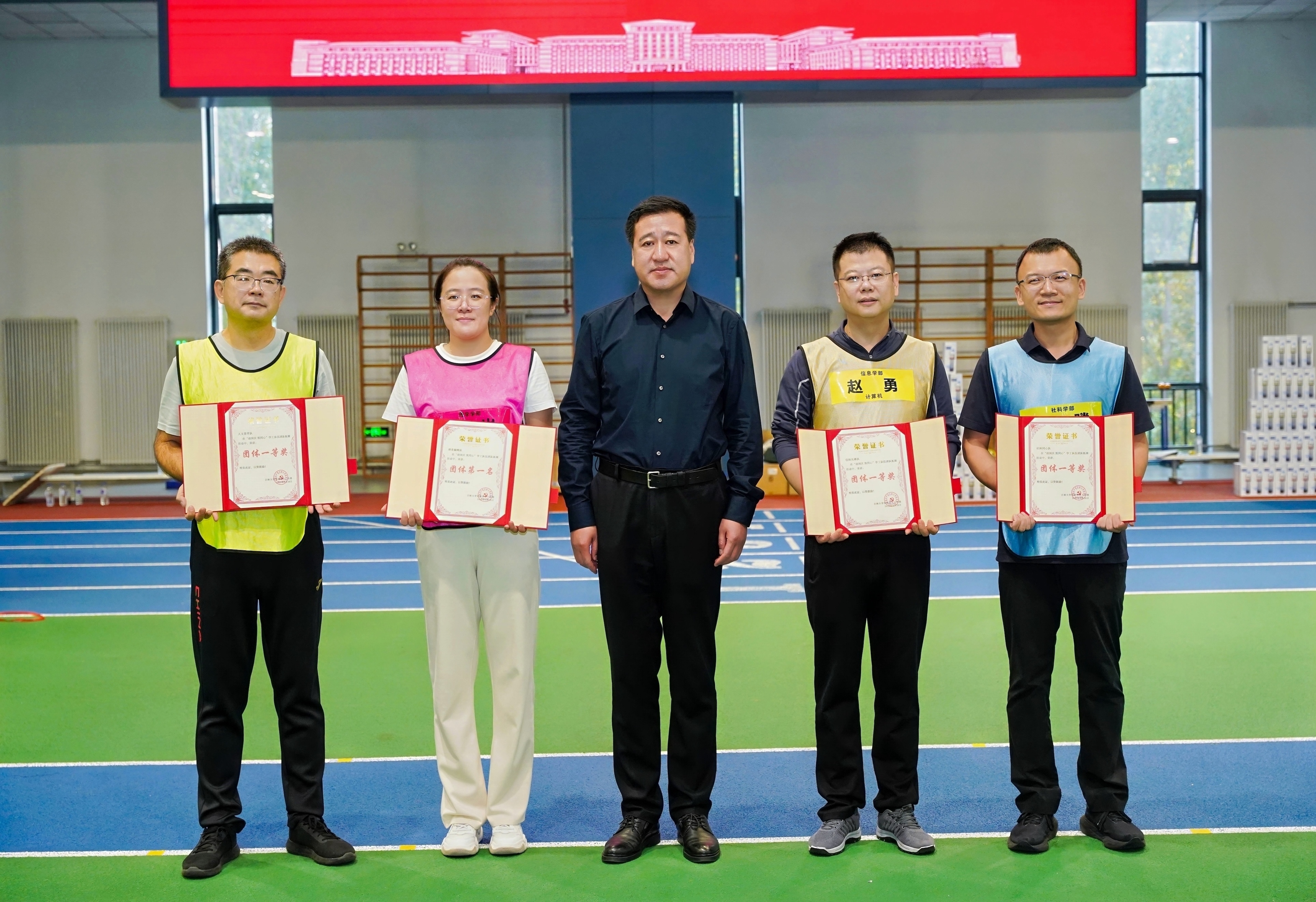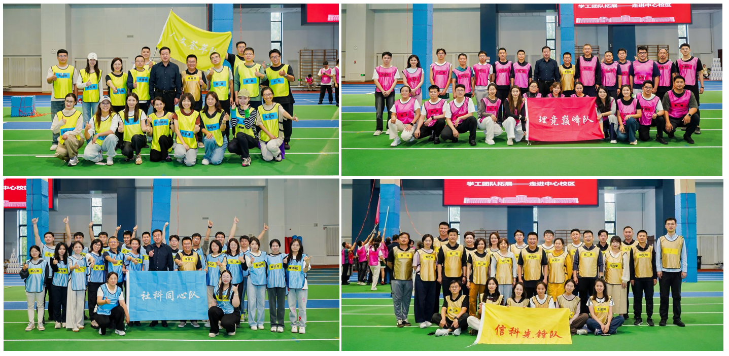 全体参与活动人员根据人文学部、理学学部、社科学部、信息学部划分为4支队伍,各支队伍自主创意队名、口号和队标。在训练过程中,大家全情投入、奋勇争先,展现出了良好的精神风貌和团队凝聚力。各队通过“迎面接力”“合力筑塔”等一系列精心设计的项目,不断突破自我、协同攻坚,在激情呐喊与紧密配合中圆满完成各项任务。