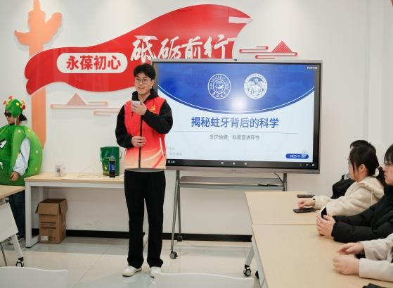 口腔科普知识问答抽奖环节将现场气氛推向高潮。“冬季用冷水刷牙是否正确?”“成年人建议多久做一次口腔检查?”抽取的贴近生活的科普问题,师生们踊跃抢答,答题正确率颇高。为同学们精心准备的精美牙膏、牙线、软毛牙刷等护齿礼品,在欢乐互动中巩固了冬季护齿知识。